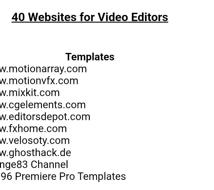 For video editors, these 40 websites are a goldmine of resources. If you want an all-in-one solution, go with Motion Array for templates, LUTs, and stock footage. For those who want free professional-grade assets, Mixkit and Dareful are must-haves.Whether it’s visuals, sound, or color grading—these platforms can help you push your edits to the next level and create projects that truly stand out.